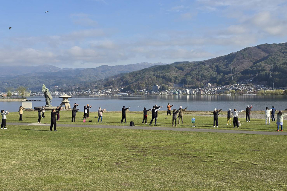 諏訪湖畔の気持ち良い公園で月2回、太極拳の無料講習を行っています。