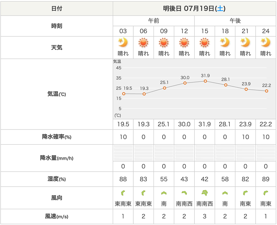 7時台は21℃。その後グングン気温が上がっていきそうな日です。