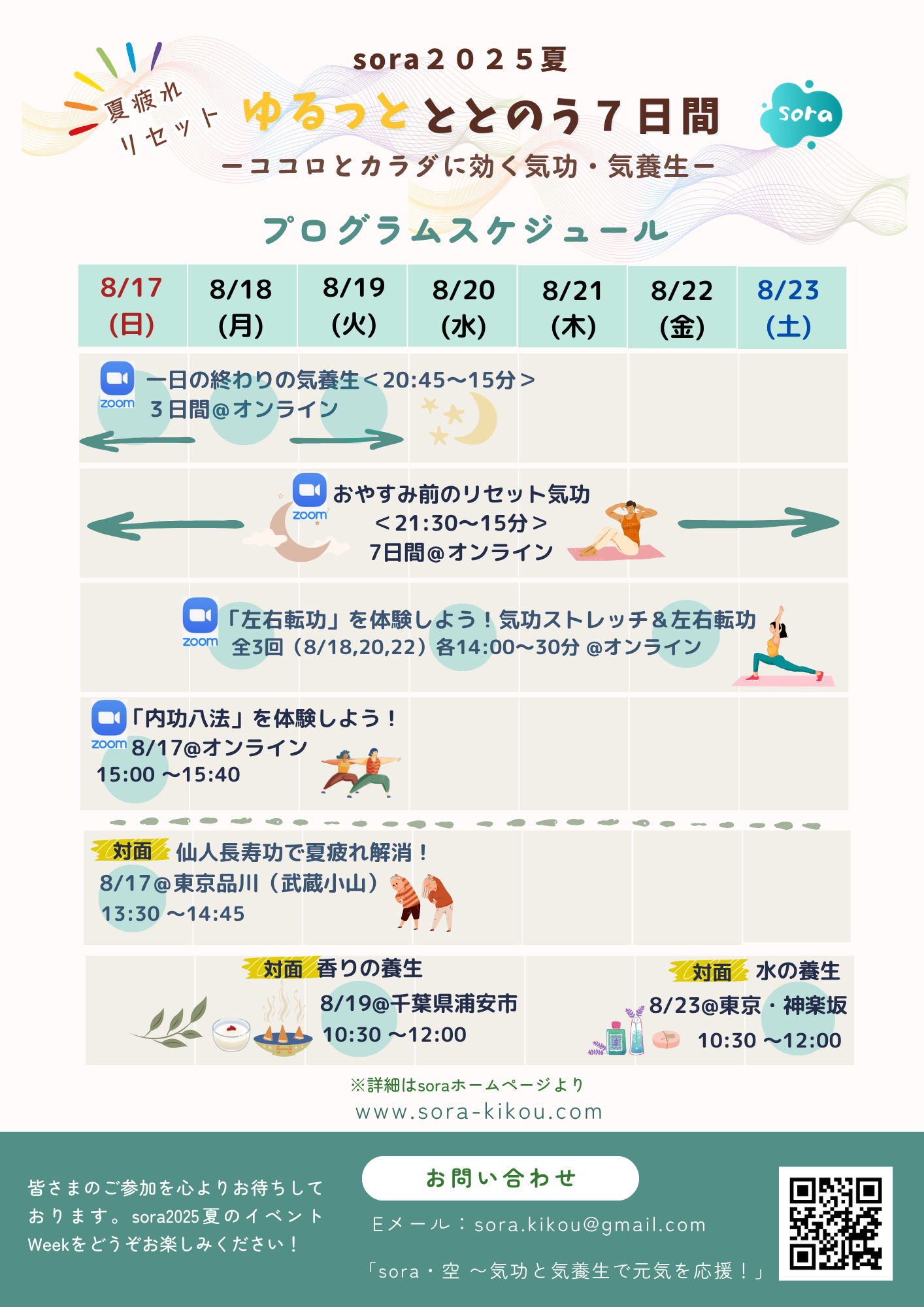 気持ちも疲れてしまいそうですが、sora夏イベントで心身の疲れをリセットしませんか?
