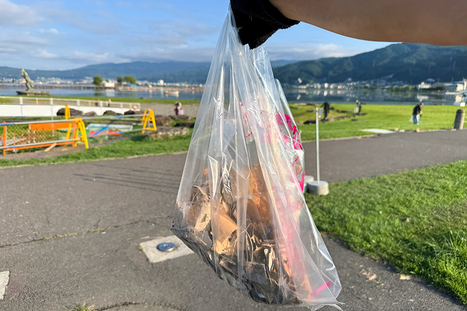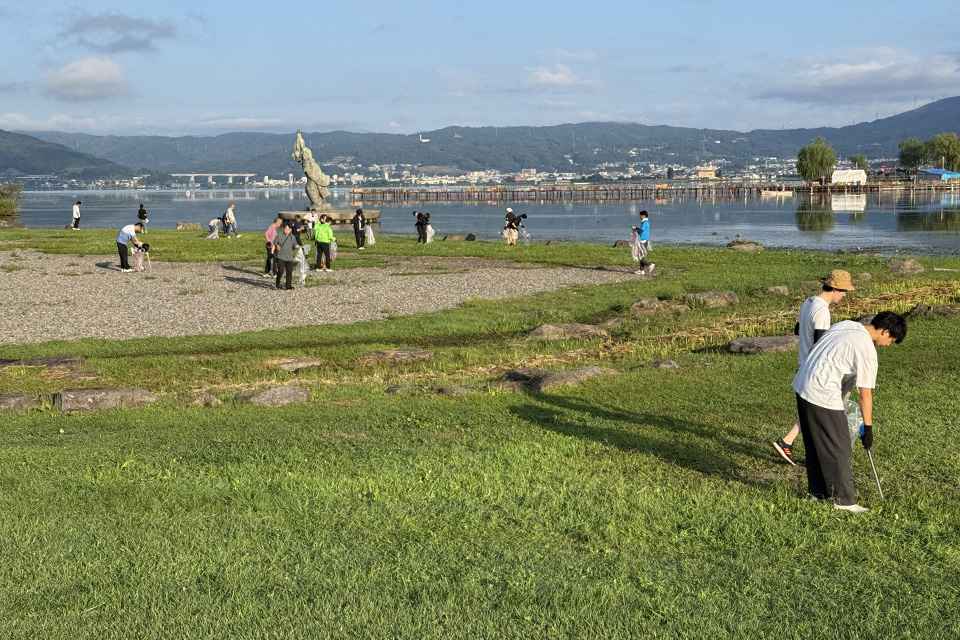 これは諏訪湖花火大会の翌朝に行われている6時からのボランティア清掃。