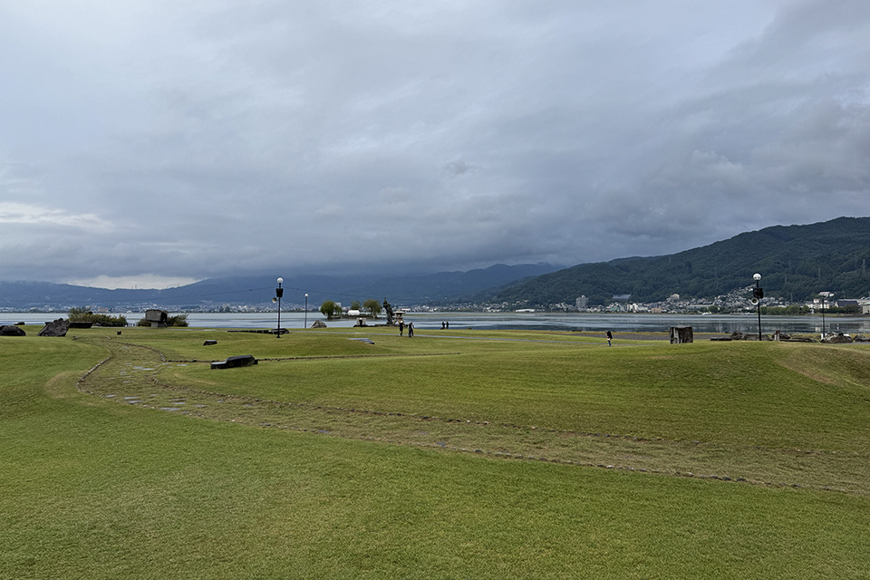 後藤さんと連絡を取り、絵の展示とお絵描き朝活は中止としました。その後諏訪湖畔で合流し、太極拳も絶望的だなぁと思っていたところ6時50分には雨があがったのでした。