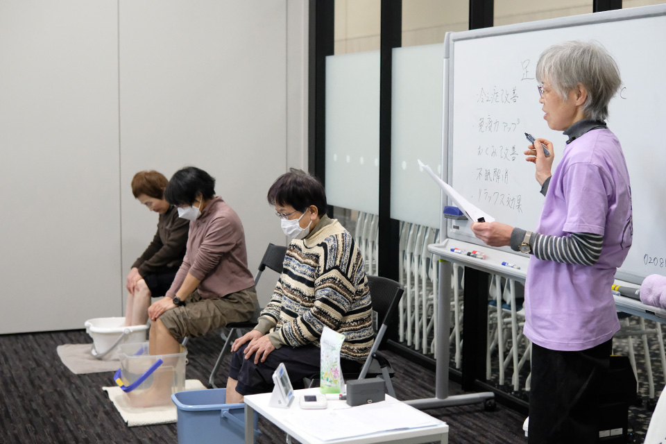 足湯のすすめ講座後の休憩時間に足湯器を早速ポチり。